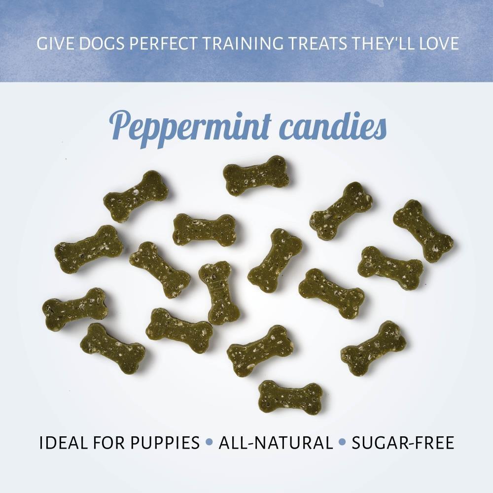Mentine Mintz per cani con bicarbonato e tè verde: rinfrescano l’alito e supportano l’igiene orale in modo naturale e appetibile.