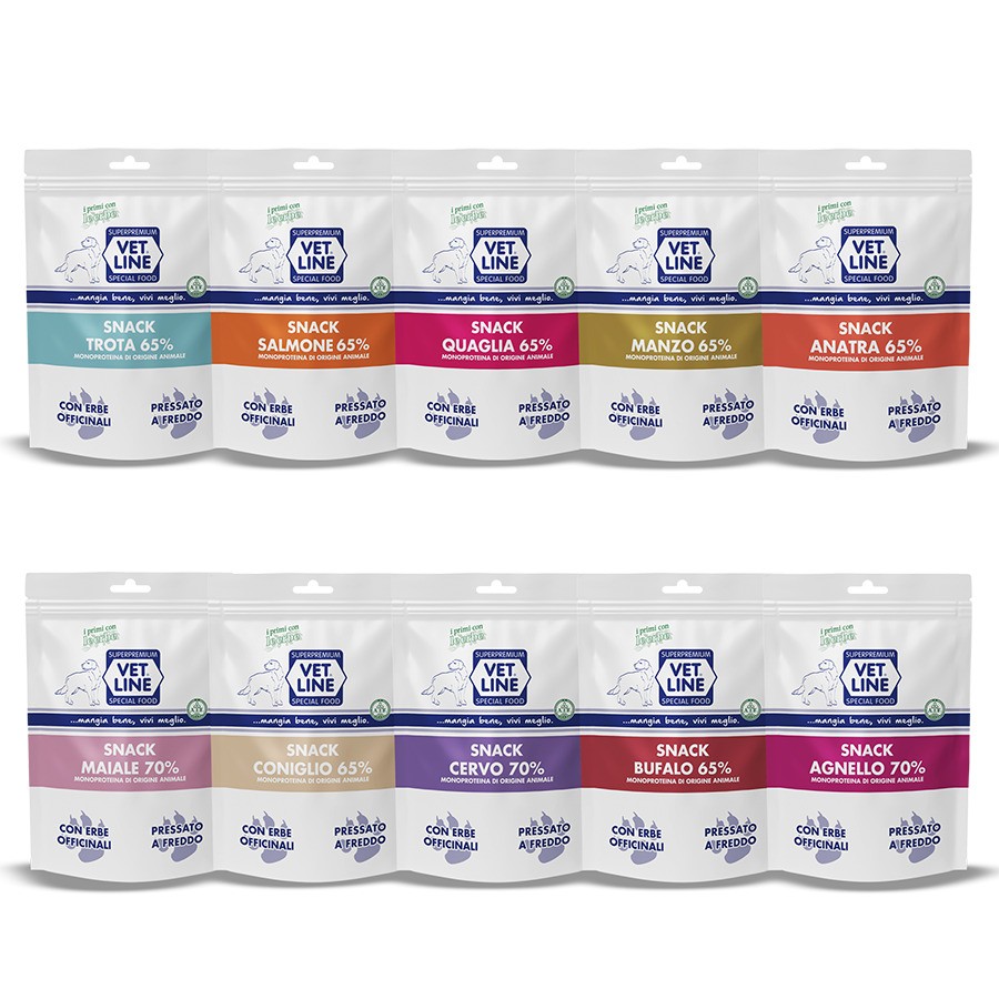 Gli Snack VetLine pressati a freddo sono premi naturali e altamente digeribili, perfetti per cani piccoli come il Chihuahua. Preparati con carni selezionate, frutta, verdure, semi di lino, rosmarino, spirulina ed erbe officinali, mantengono intatti nutrienti e benefici grazie alla lavorazione a bassa temperatura. Disponibili in gusti assortiti, sono ideali per cuccioli e adulti, come ricompensa sana e gustosa ogni giorno.